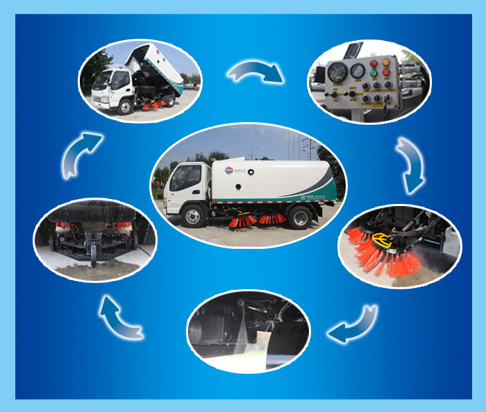 6、独特的高效低噪音扫路车专用风机,使整车具有工作噪音低,作业油耗低,洗净率高等特点。